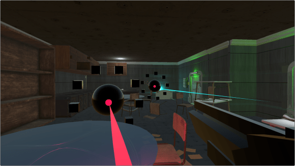 In Afterlife, the player awakens in a strange facility with little memory of how they got there. The goal is simple: find a way out by solving puzzles and inspecting the environment. On the way, the player is accosted by strange black-and-red orbs who attack on sight, and fights back using a similarly-sourced laser rifle they find on a table. Over time, the dangers escalate until a final showdown where the player finally escapes.